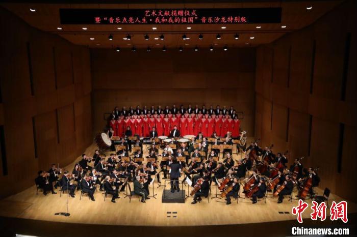 國家圖書館重要藝術(shù)文獻捐贈儀式暨“音樂點亮人生·我和我的祖國——音樂沙龍?zhí)貏e版”活動3日晚在國圖藝術(shù)中心·音樂廳舉辦。國家圖書館黨委書記、副館長魏大威接受捐贈,并為捐贈人代表中央民族歌舞團民樂團團長馬蘭花頒發(fā)捐贈證書。