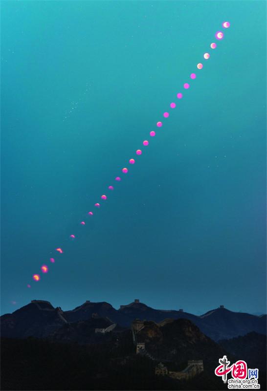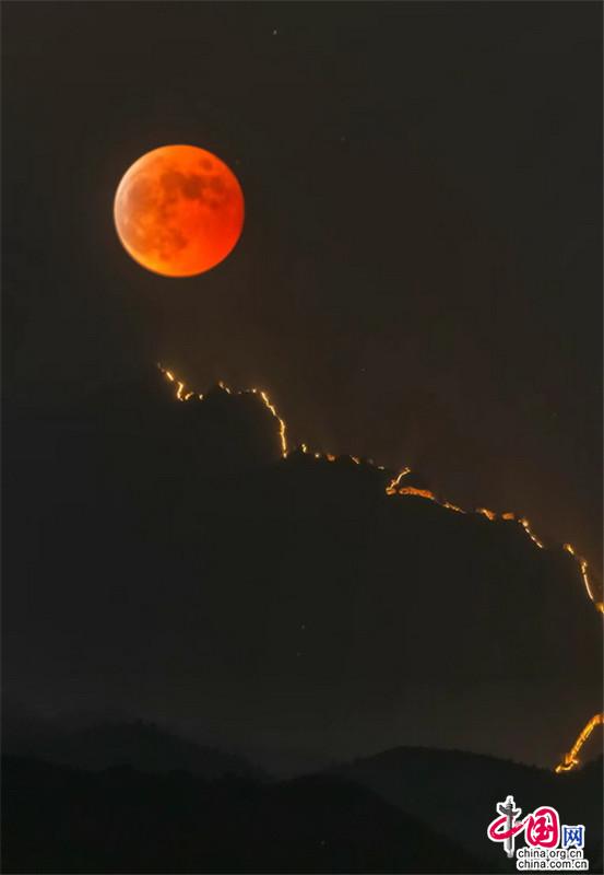 【點(diǎn)睛】11月8日晚,2022年天文奇觀——月全食天象現(xiàn)身。初冬的金山嶺長(zhǎng)城,顏值依舊是巔峰,那一輪紅月亮,月全食(紅月亮)天象,驚艷了天上人間。