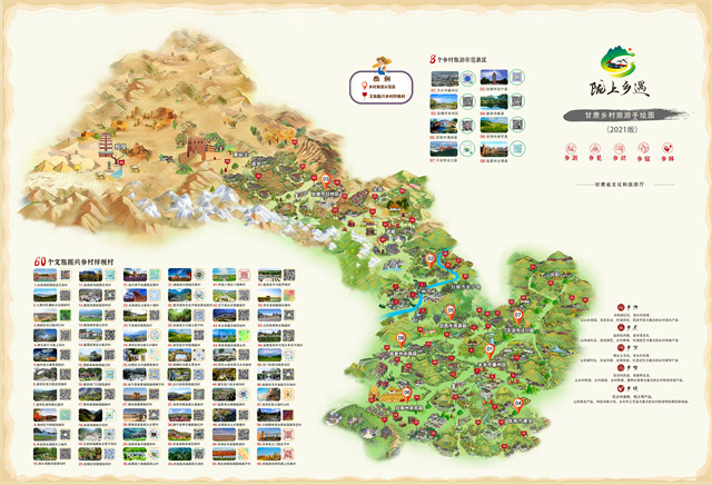 ——鄉(xiāng)村旅游。甘肅旅游,70%以上的旅游資源集中在農(nóng)村。近年來,全省文旅系統(tǒng)累計(jì)投資12億元,共打造省級鄉(xiāng)村旅游示范村310個(gè),創(chuàng)建鄉(xiāng)村旅游示范縣14個(gè),文旅振興鄉(xiāng)村樣板村120個(gè),培育鄉(xiāng)村旅游合作社470個(gè),38個(gè)村入選建全國鄉(xiāng)村旅游重點(diǎn)村,3個(gè)鄉(xiāng)鎮(zhèn)入選全國首批鄉(xiāng)村旅游重點(diǎn)鄉(xiāng)鎮(zhèn)、6個(gè)村入選第三批全國鄉(xiāng)村旅游重點(diǎn)村名錄,2家民宿創(chuàng)建為首批全國甲級旅游民宿。美麗鄉(xiāng)村及特色民宿已成為省內(nèi)外游客停留和消費(fèi)的首選地,甘南扎尕那村、隴南花橋村、慶陽天富億村、天水孫集村、平?jīng)鲽P凰村、臨夏大川村等一大批示范村已成為省內(nèi)外游客的熱門打卡地,美麗鄉(xiāng)村正在成為全省綠色經(jīng)濟(jì)的新型引擎。其中,2019年,甘肅鄉(xiāng)村旅游接待游客5918萬人,收入175億元,鄉(xiāng)村旅游占到全省文化旅游半壁江山,讓老百姓身邊青山綠水真正成了“金山銀山”。2020年全國鄉(xiāng)村旅游及民宿工作現(xiàn)場會、“一帶一路”美麗鄉(xiāng)村國際論壇在甘肅舉辦,甘肅鄉(xiāng)村旅游一枝獨(dú)秀、異軍突起,受到社會各界高度贊揚(yáng)和廣泛關(guān)注。2021年,甘肅鄉(xiāng)村旅游游客接待量達(dá)1.31億人次,實(shí)現(xiàn)鄉(xiāng)村旅游收入390.33億元,分別恢復(fù)至疫情前的103.20%和114.80%,顯著高于國內(nèi)旅游的整體恢復(fù)比例。值得一提的是,全省文旅系統(tǒng)在大力發(fā)展鄉(xiāng)村旅游的同時(shí),堅(jiān)持把非遺工坊建設(shè)也作為重中之重,積極創(chuàng)新探索“非遺+扶貧”模式,打造融入當(dāng)代審美的非遺品牌,搭建扶貧產(chǎn)品通往市場的平臺,全省累計(jì)建成非遺扶貧就業(yè)工坊106家,共有11家非遺工坊納入全國消費(fèi)扶貧產(chǎn)品目錄和數(shù)據(jù)庫,認(rèn)定省級以上非遺就業(yè)工坊93家,涉及各級傳統(tǒng)技藝類非遺代表性項(xiàng)目77項(xiàng),分布在全省11個(gè)市州46個(gè)脫貧縣區(qū),吸納就業(yè)6000多人;年均組織開展“非遺過大年、文化進(jìn)萬家”民俗展演活動1000多場次,極大豐富了廣大群眾精神文化生活。