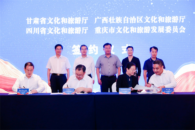 ——“環(huán)西部火車游”。“環(huán)西部火車游”是由甘肅省文旅廳與中國鐵路蘭州局集團(tuán)公司于2018年4月聯(lián)合推出的鐵旅融合王牌旅游產(chǎn)品,被譽(yù)為陸上郵輪、夢想旅游專列。甘肅省文旅廳聯(lián)合中國鐵路蘭州局集團(tuán)于2020年5月1日串起敦煌到隴南12個(gè)站點(diǎn),打通了省內(nèi)小環(huán)線;8月1日開始跨省推廣,打通了甘川渝陜寧青“1+5”中環(huán)線;10月1日從甘肅到廣西再到新疆,途經(jīng)九省區(qū)市8000公里,形成了連接“陸海絲”、對接?xùn)|盟與中亞的大環(huán)線。其中,2020年下半年,由省文旅廳牽頭跨省跨界組織開展了聲勢浩大的“聯(lián)通陸海絲·助推雙循環(huán)”——甘肅文旅“環(huán)西部火車游”主題推廣營銷活動,合力奏響文化和旅游系統(tǒng)“你中有我、我中有你”的大聯(lián)動、大協(xié)作、大發(fā)展“交響曲”,成功實(shí)現(xiàn)了“環(huán)西部火車游”連接聯(lián)通陸上絲綢之路和海上絲綢之路大環(huán)線的預(yù)期目標(biāo)。此主題推廣營銷活動獲評“2020年度中國文旅營銷創(chuàng)新典范”,入選2020年國內(nèi)旅游宣傳推廣典型案例,“環(huán)西部火車游”產(chǎn)品因此更加走紅走俏。2018—2021年,“環(huán)西部火車游”累計(jì)開行專列178列,組織游客15.67萬人,實(shí)現(xiàn)旅游收入1.37億元。2022年,省文旅廳與平?jīng)鍪姓⒅袊F路蘭州局集團(tuán)合作,開通運(yùn)營“環(huán)西部火車游·崆峒號”品牌列車,從蘭州出發(fā)至平?jīng)雒恐芡颠\(yùn)行一趟,著力打造交旅融合的“平?jīng)鰳影?rdquo;。