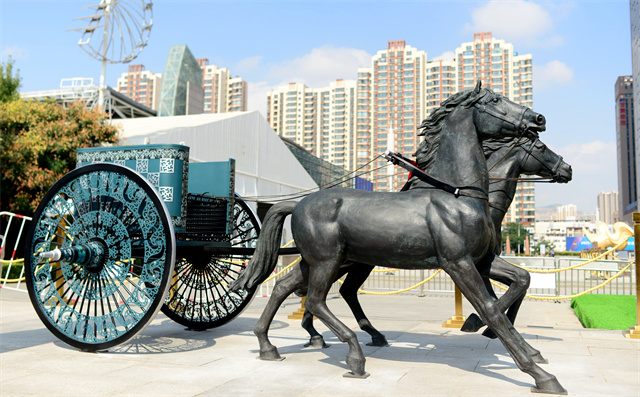 ——文物活化利用工程。作為全國文物大省,甘肅省文旅廳深入學(xué)習(xí)領(lǐng)會、認(rèn)真貫徹落實(shí)習(xí)近平總書記關(guān)于“讓文物活起來”的重要論述精神,持續(xù)激活文物資源和文化遺產(chǎn)蘊(yùn)含的創(chuàng)新創(chuàng)造基因,不斷提高展示傳播水平,讓文物說話,讓歷史說話,讓文化說話,已經(jīng)成為全省文旅工作者的生動實(shí)踐。正在加快敦煌研究院“典范”“高地”建設(shè),推進(jìn)長城、長征、黃河國家文化公園建設(shè)。實(shí)施中華文明探源工程和“考古中國”等重大項(xiàng)目,以甘肅秦文化和西戎文化考古成果為原型復(fù)制“戰(zhàn)國豪車”,賦能文旅產(chǎn)業(yè)。由甘肅省文旅廳組織制作的戰(zhàn)國戎人車輿,嚴(yán)格依照馬家塬戰(zhàn)國戎人貴族墓地出土古車式樣,采用銅雕髹漆等技藝,再現(xiàn)了戰(zhàn)國戎人車輿風(fēng)采,體現(xiàn)了甘肅文旅系統(tǒng)融入“一帶一路”倡議、秉承絲路精神、復(fù)興絲綢之路、構(gòu)建人類命運(yùn)共同體的文化自覺。戰(zhàn)國戎人車馬以文創(chuàng)的形式與甘肅彩車一道復(fù)原展出,即刻走進(jìn)大眾視野,成為甘肅文旅和省會蘭州的又一張靚麗新名片、城市新地標(biāo)。
