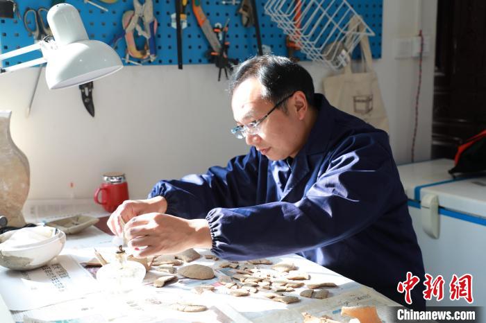 在工作站內(nèi),信陽市平橋區(qū)城陽城址管委會(huì)副主任劉勇也是修復(fù)組成員之一,今年也是他在城陽城工作的第18個(gè)年頭。