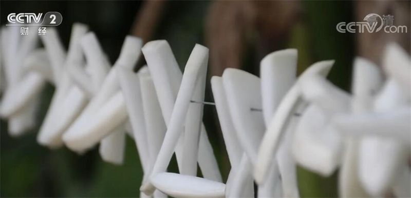 四川省瀘州市納溪區(qū)豐樂鎮(zhèn)村民 李焱梅:切得時(shí)候是有規(guī)矩的,先切成片,然后切成一條一條的斜杠,牽起來(lái)一片就是一條。