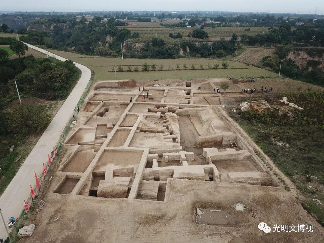 甘肅慶陽西峰西郊的南佐遺址,坐落在黃土高原第一大塬——董志塬上,傳說中這里是黃帝部族的重要活動地域,也是以農(nóng)業(yè)著稱的周人祖先不窋?shù)睦霞?。南佐遺址發(fā)現(xiàn)于1958年,1984—1986年和1994—1996年有過兩個階段的發(fā)掘,從2021年開始第三階段的發(fā)掘和調(diào)查、勘探工作,基本確認這是一處以仰韶文化晚期大型聚落為主體的遺址,遺址面積在600萬平方米以上,可能有外環(huán)壕。聚落中部是由9座方形夯土臺及其環(huán)壕圍成的面積約30萬平方米的核心區(qū),核心區(qū)中部偏北是數(shù)千平方米的由“護城河”和夯土宮墻圍成的“宮城”。“宮城”中心為主殿,“九臺”之外還有多處居住區(qū)、夯土臺、溝渠水利設施等遺存,出土了大量白陶、黑陶等珍貴遺物和大量水稻,從多個方面顯現(xiàn)出早期國家和文明社會的氣象。