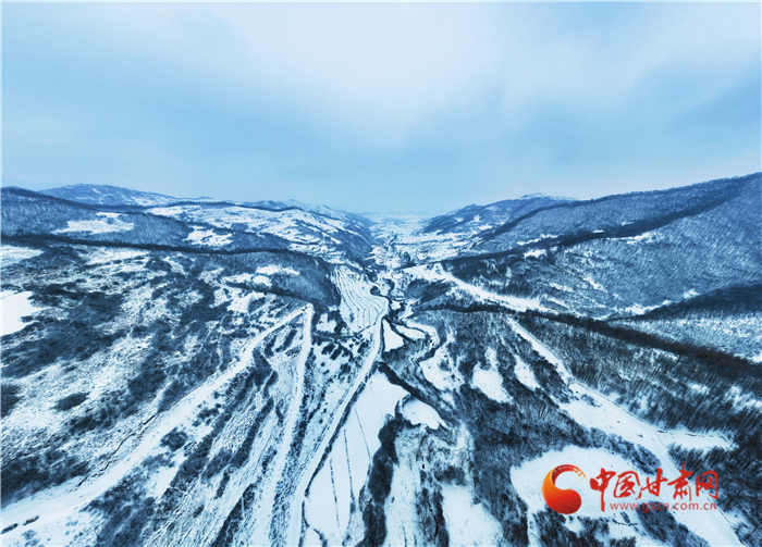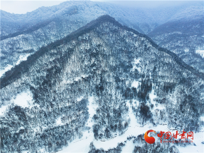 雪花像是美麗的精靈飄落山間,又像是上帝手中的畫筆,勾勒出了一幅優(yōu)美的水墨世界,正如詩句一樣“白雪卻嫌春色晚,故穿庭樹作飛花”。遠處大霧又為關(guān)山蓋上了神秘的面紗,層層疊疊,仙氣繚繞,令人嘆為觀止。