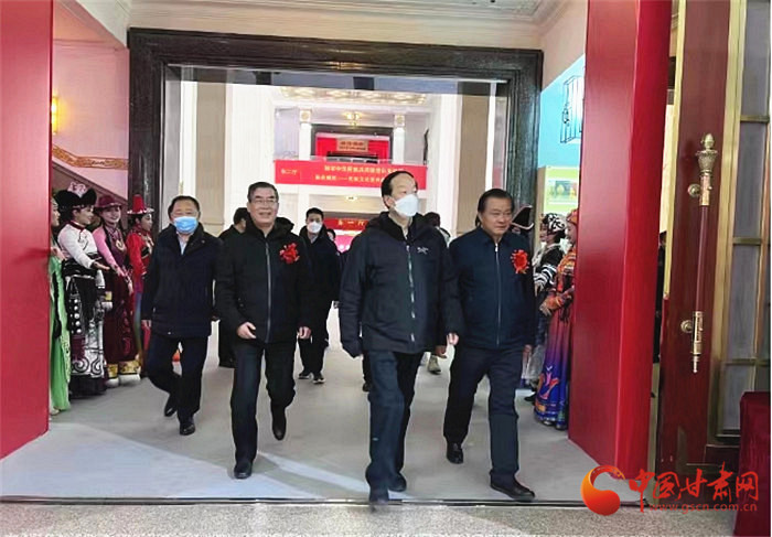 趙勇先后觀看“同心筑夢(mèng)”“賡續(xù)文脈”“吉祥家園”三個(gè)主題展區(qū)的340幅書(shū)畫(huà)攝影作品和158冊(cè)精品古籍圖書(shū),對(duì)甘肅近年來(lái)民族古籍整理工作給予了充分肯定。