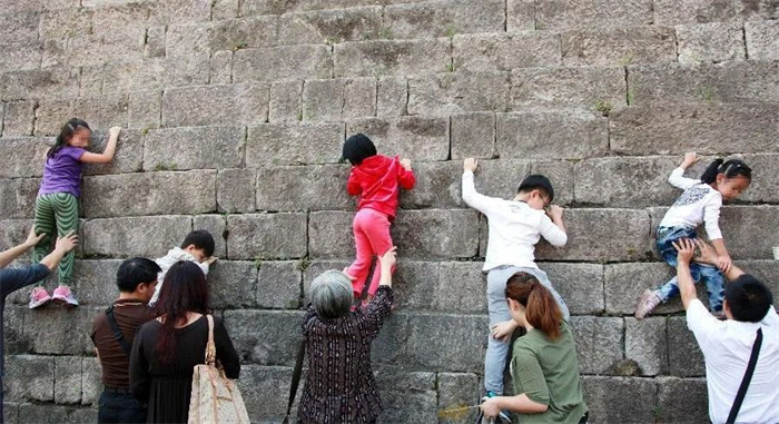 圖片不文明“破窗效應(yīng)”:家長(zhǎng)協(xié)助孩子攀爬城墻