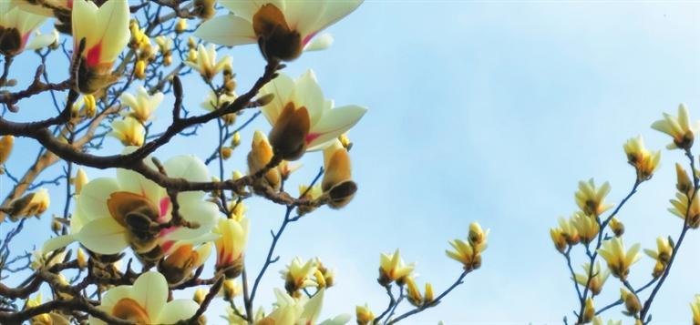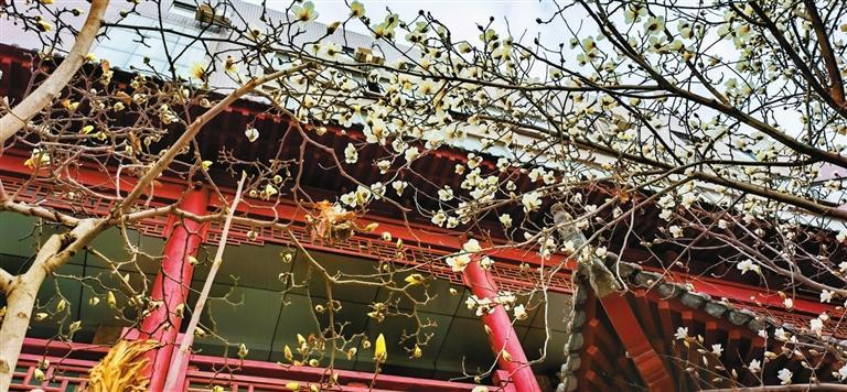3月10日,記者途經(jīng)秦州區(qū)自由路玉蘭一條街時(shí)欣喜地看到,由東往西走,穿過(guò)刻有“秦風(fēng)在茲”的天水古城牌坊,滿巷漸次盛開(kāi)的玉蘭花一樹(shù)樹(shù)玉樹(shù)臨風(fēng),一朵朵冰清玉潔。平房民居的屋頂上、脊獸斗拱邊,橫橫斜斜“躺臥”著若干膚白肌潤(rùn)的花朵,借景為鄰靜觀細(xì)瞧,人與花似感心意相通,片刻間也能生出不少情趣來(lái)。