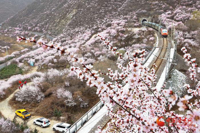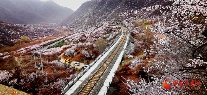 陽(yáng)春三月,桃之夭夭。在崇信縣的漫山遍野上,朵朵桃花迎來(lái)盛放期。微風(fēng)吹來(lái),暗香浮動(dòng)。近看,朵朵嬌俏的桃花層層疊疊,錯(cuò)落有致。遠(yuǎn)看,漫山紅遍如霞似錦,爛漫壯觀。特別是一列列火車(chē)穿行而過(guò),與桃花撞了個(gè)滿懷,奔向充滿希望的春天。