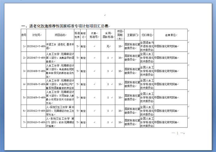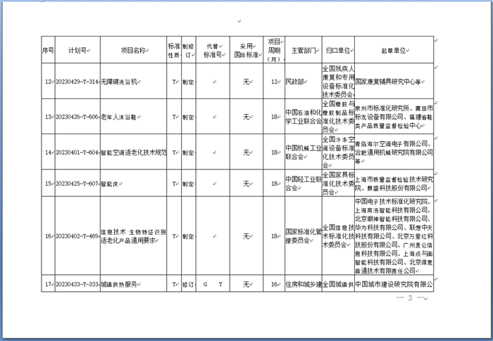 國家標準化管理委員會(以下簡稱國家標準委)發(fā)布《關于下達適老化改造推薦性國家標準專項計劃及相關標準外文版計劃的通知》(以下簡稱《通知》)。《通知》稱,為實施積極應對人口老齡化國家戰(zhàn)略,對照全國政協(xié)關于加快推進社會適老化改造的民主監(jiān)督事項,經(jīng)研究,國家標準化管理委員會決定下達適老化改造推薦性國家標準專項計劃及相關標準外文版計劃(附后)。本批適老化改造領域推薦性國家標準專項計劃共計39項,其中制定35項、修訂4項。