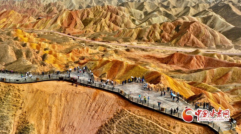 5月1日,甘肅張掖七彩丹霞旅游景區(qū)內(nèi)游人如織,來(lái)自全國(guó)各地的18000多名游客慕名前來(lái),欣賞獨(dú)特的丹霞地貌,領(lǐng)略大自然雄奇壯觀的景色。