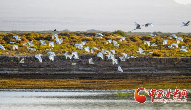 瓜州縣積極踐行“綠水青山就是金山銀山”發(fā)展理念,大力實施“生態(tài)立縣”戰(zhàn)略,持續(xù)加大保護區(qū)管護力度,不斷健全濕地管護體系,使縣內濕地面積逐年增加,生態(tài)系統(tǒng)得到有效保護,成為水鳥棲息繁衍的樂園。