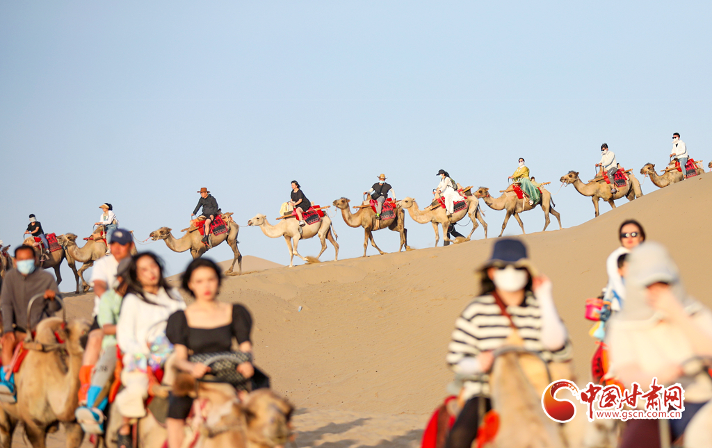【隴拍客】敦煌駱駝排隊(duì)“上班” 千年絲路令游客“神往”