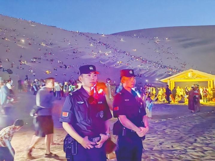 “現(xiàn)在的游客數(shù)量每天都在增長(zhǎng),基本上每天都有4萬(wàn)多人入園。凌晨時(shí)分,鳴沙山上仍然是繁星點(diǎn)點(diǎn)、燈光閃爍,游客自發(fā)組織的演唱會(huì)讓在場(chǎng)的人都流連忘返。我們現(xiàn)在早上天不亮就上崗,晚上要保證每一名游客安全出園才能下班。”鳴沙山派出所所長(zhǎng)達(dá)春平說(shuō)。