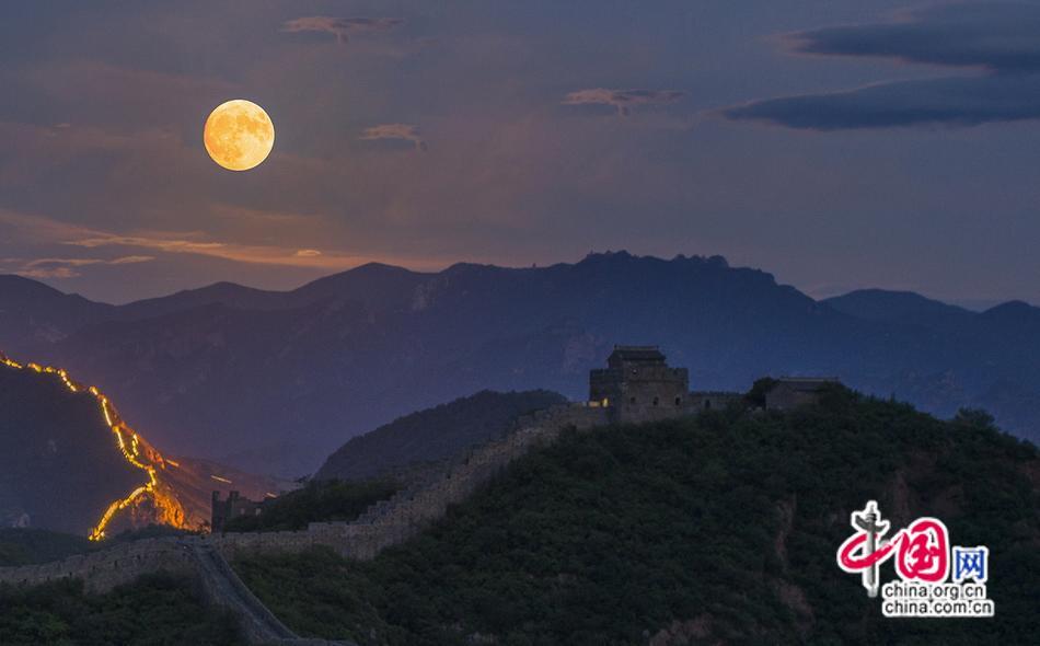 【點(diǎn)睛】8月30日晚,今年最大“超級(jí)月亮”現(xiàn)身金山嶺長(zhǎng)城夜空。夜色中,曾被央視評(píng)選為“中國(guó)最美賞月地”的金山嶺長(zhǎng)城顯得更加神秘、壯美巍峨。中秋國(guó)慶小長(zhǎng)假就要來(lái)了,長(zhǎng)城賞月別有韻味。