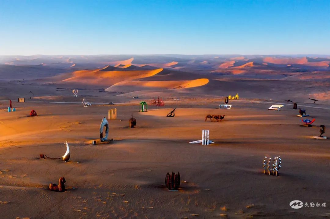 民勤蘇武沙漠景區(qū)絕對是網(wǎng)紅般的存在。刷屏各平臺它已成為常客,沙漠雕塑國際創(chuàng)作營是大家最愛的拍照打卡地,132座不同材質(zhì)、不同風(fēng)格的藝術(shù)佳作,如一顆顆璀璨明珠飄落瀚海,與藍天白云、金色大漠完美融合、相映成趣,超級出片。