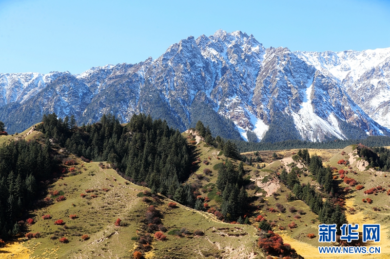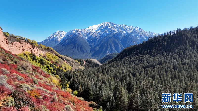 深秋時節(jié),在甘肅省張掖市肅南裕固族自治縣境內(nèi)的祁連山國家公園,山頂白雪皚皚,山間云霧繚繞,山林色彩斑斕,展現(xiàn)出天地之大美。(圖片:成林 視頻:劉欣瑜 成林)