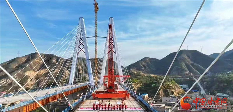 桑園子黃河大橋全長959米,是國內(nèi)8度以上地震區(qū)最大跨度分幅聯(lián)塔斜拉橋,也是我省打造的首條“5G+智慧公路”示范項目。上午10時,隨著最后一片梁成功架設(shè)到橋墩上,桑園子黃河大橋?qū)崿F(xiàn)合龍。該橋梁在建造過程中克服了橫跨黃河天險、桑園子山險區(qū)、隴海鐵路、東金公路帶來的巨大挑戰(zhàn),無懼區(qū)域內(nèi)22條地震斷裂帶和峽谷大風沖擊的影響,同時,緊跟創(chuàng)新驅(qū)動發(fā)展理念,深入開展多項創(chuàng)新技術(shù)應(yīng)用研究,實現(xiàn)多個“從0到1”的突破。