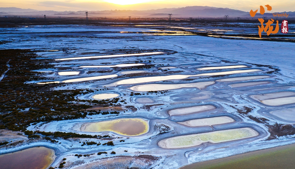 陽光穿透晨霧,灑在白墩子鹽沼濕地的每一個角落。一方方水域隨著光線的變化,呈現(xiàn)出瑰麗的色彩。