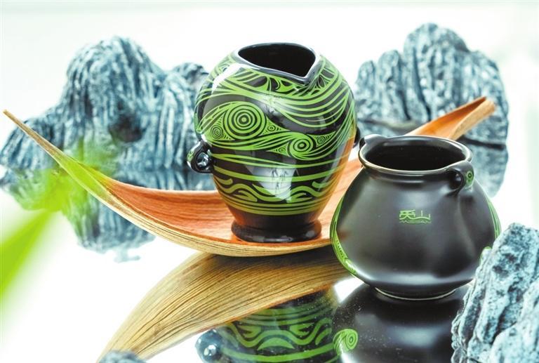 “馬家窯彩陶杯”的色彩設計也有創(chuàng)新之舉。李思成告訴記者:“為了能將古老神秘的彩陶紋樣與當下年輕審美結合,決定選擇更貼近自然風情的綠色線條,采用黑瓷,更能凸顯器皿的質感。就這樣,既保留文化底蘊的同時,又賦予了它全新的質感,在視覺上更具有沖擊力。”