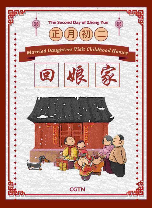 傳統(tǒng)上出嫁的女兒在婆家過(guò)除夕,所以在正月初二這天女兒會(huì)回娘家看望親人。