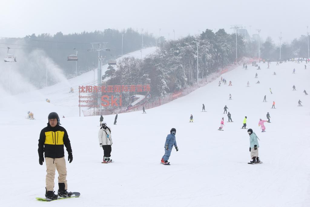 滑雪愛好者在沈陽市東北亞滑雪場滑雪。新華社記者陳為 攝