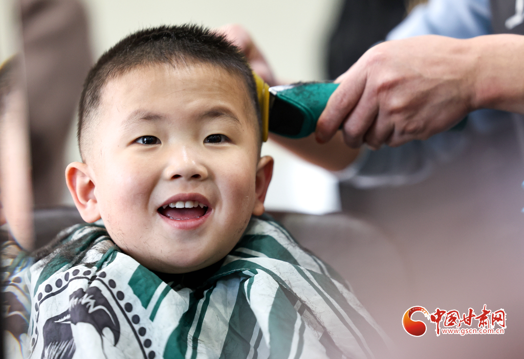 3月11日,在臨夏市一理發(fā)店內,理發(fā)師正在為一名小朋友“剃龍頭”。當日,是農歷二月初二,許多家長帶著孩子到理發(fā)店理發(fā),希望孩子能健康成長,日后出人頭地,為新的一年討個好彩頭。