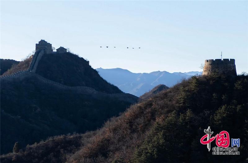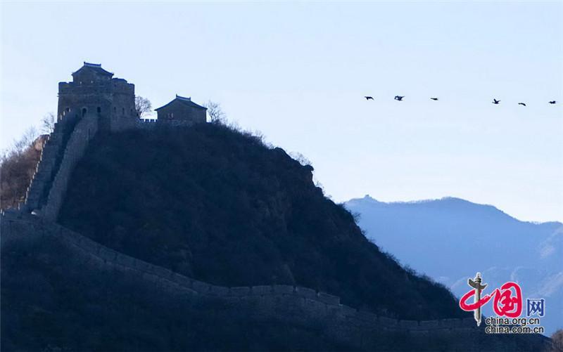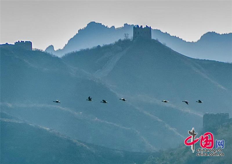 從南方遷徙飛翔越過金山嶺長城后繼續(xù)北飛,