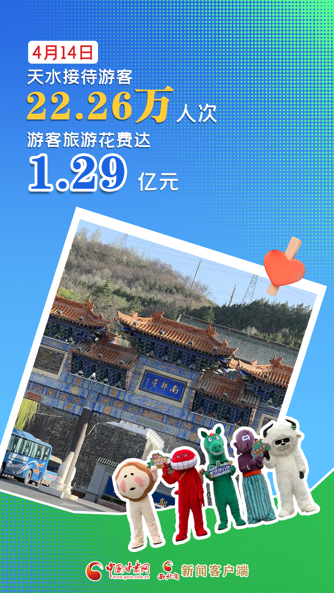 海報|4月14日,天水市共接待游客22.26萬人次,游客旅游花費達1.29億元
