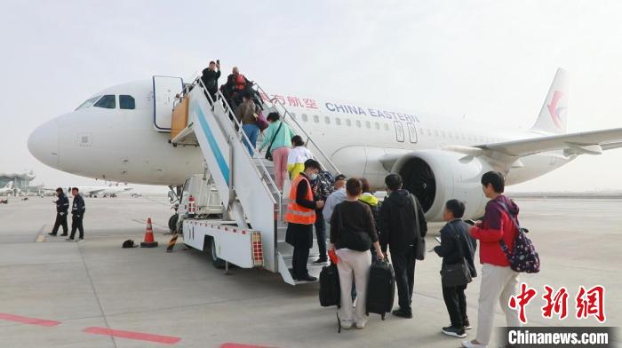 4月15日,蘭州至香港直飛正班航班正式開通。圖為游客登機。(甘肅省民航機場集團供圖)