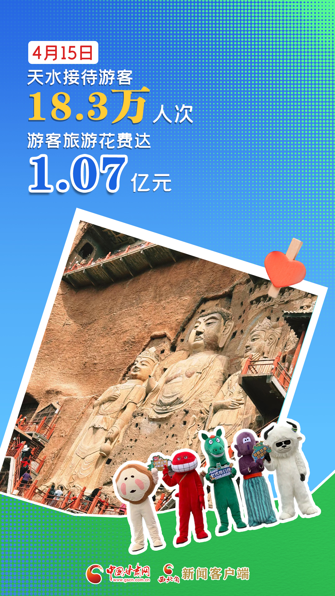 海報|4月15日,天水市共接待游客18.3萬人次,游客旅游花費達(dá)1.07億元