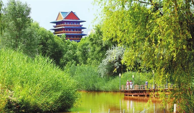 隨著黃河水位的變動(dòng),濕地四季景色各異。亭臺樓閣、小橋流水,漫步其間讓市民和游客領(lǐng)略到黃河濕地的獨(dú)特風(fēng)貌。