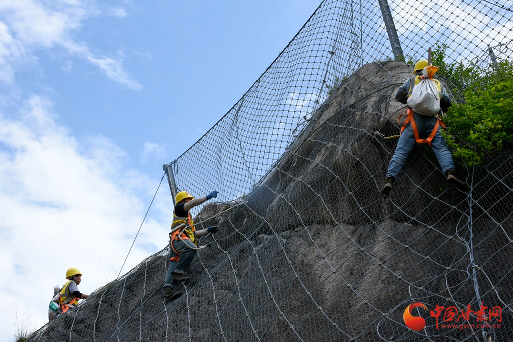 近日,隴海鐵路魏家磨1號(hào)隧道上方的山體上,蘭州鐵路局定西工務(wù)段新陽(yáng)鎮(zhèn)橋路養(yǎng)修工區(qū)的作業(yè)人員,一手抓安全繩,一手拿檢查錘,攀附在懸崖峭壁上仔細(xì)排查防護(hù)網(wǎng)內(nèi)危石情況,及時(shí)消除落石隱患。