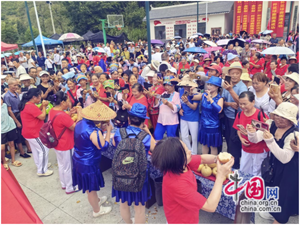 “今天的活動(dòng)非常熱鬧,我聽說補(bǔ)戈村的金秋梨好吃,所以今天特地來嘗一下,真的是又大又甜,我啃了幾大口了都還沒吃完……”坪場(chǎng)上,游客彭秀芳興奮地向周圍的人描述著補(bǔ)戈金秋梨的甜美。