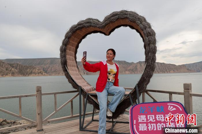 。圖為游客在龍羊峽景區(qū)內(nèi)拍照留念。中新社記者 薛蒂 攝