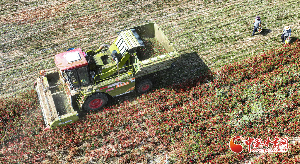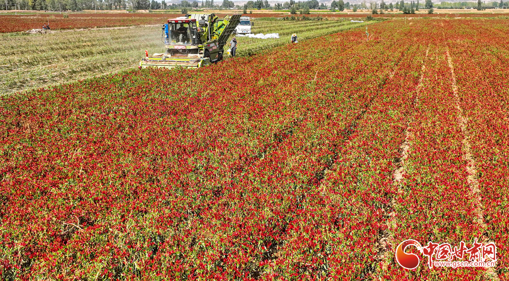 近日,臨澤縣平川鎮(zhèn)種植的3900多畝朝天椒進(jìn)入采收期,朝天椒采收機(jī)馬達(dá)轟鳴,在田地里來回穿梭,快速采收。種植農(nóng)戶們把采收的朝天椒運(yùn)往晾曬場,經(jīng)過分揀、晾曬、包裝后發(fā)往山東、河南、安徽、重慶、貴州等地訂單客戶手中。