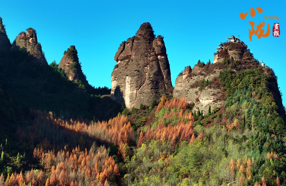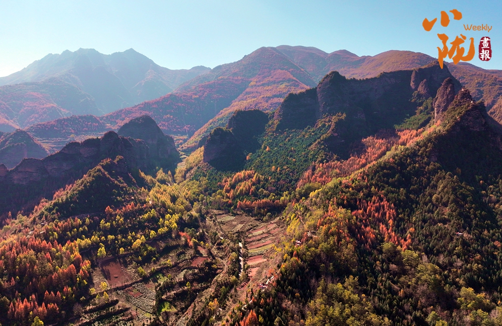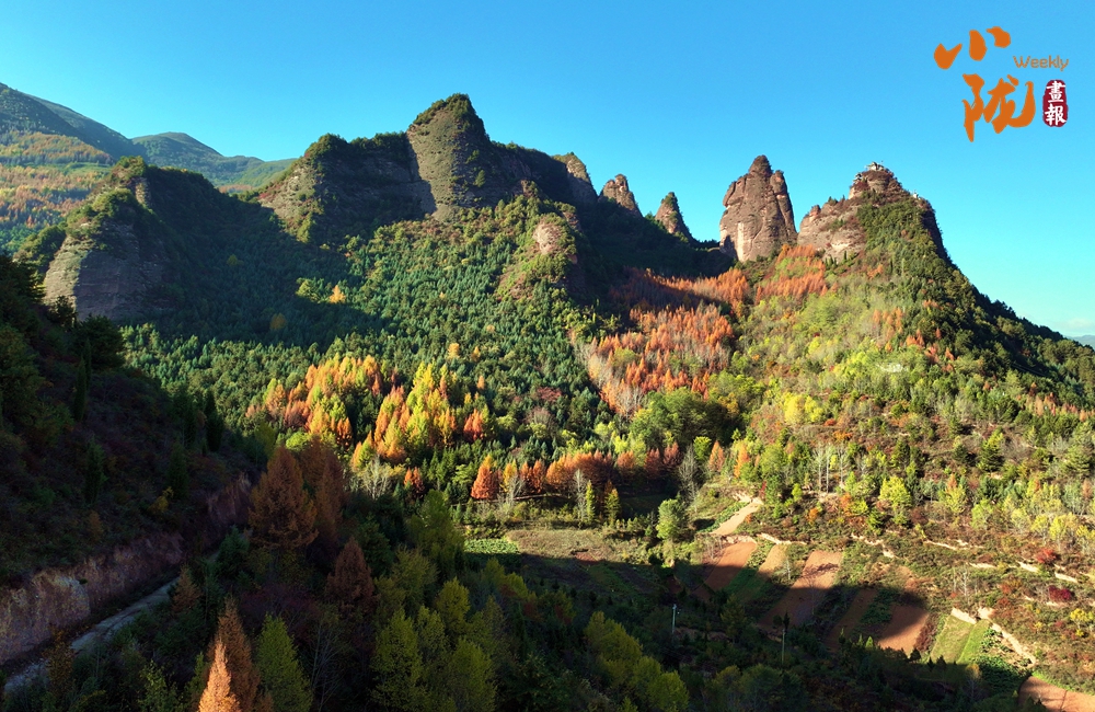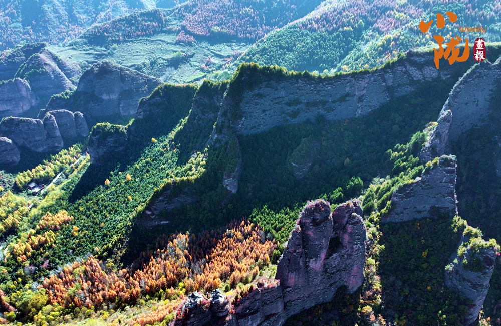 陽(yáng)光下,山間的樹林逐漸換上了金黃色,為山巒增添了更多的色彩。