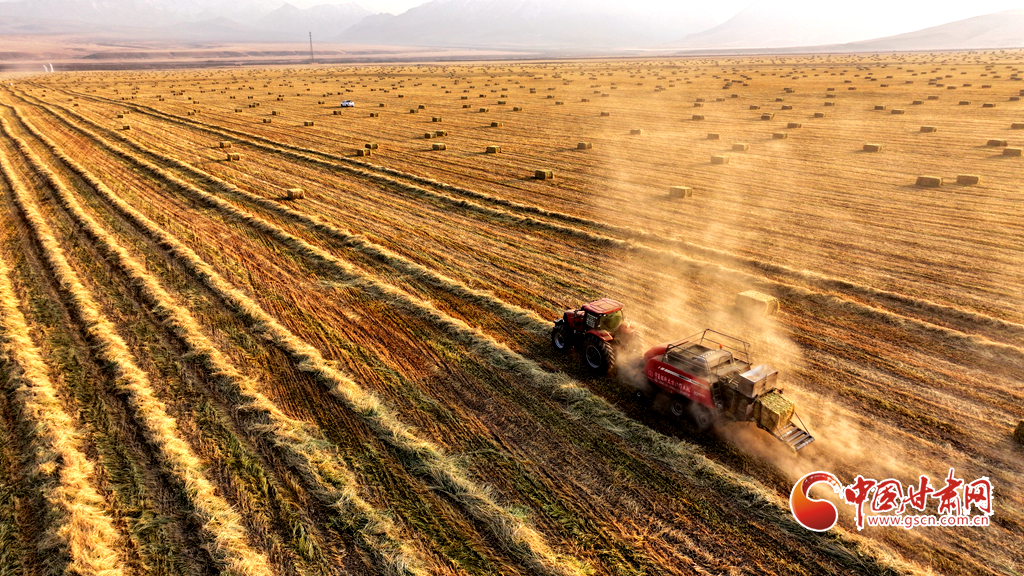 11月11日,甘肅山丹馬場的10萬畝燕麥草進入打包高峰期,田野上呈現(xiàn)出一派繁忙而有序的景象。放眼田間,大型農用機械來回穿梭,將燕麥草迅速壓縮、打包,一個個草捆整齊排列。與此同時,滿載草捆的運輸車在田間小道上來回奔波,將成品送往倉庫和銷售地。