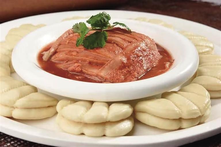“隴菜口味獨(dú)特,以五味見(jiàn)長(zhǎng),酸辣、咸鮮、苦味、五香味、香辣兼具,口味醇厚,汁咸味鮮。”宏豐隴宴蘭州老菜館創(chuàng)始人董巖一一向記者介紹烹飪的門(mén)道,隴菜烹飪技法常用炒、炸、燉、燜等多種技法,尤擅烤、煮、燉,還包括石烹、水煮、油浸等,因材制宜、因料施法。配合甘肅特產(chǎn)羊肉、百合、土豆以及各類本地中藥材,形成了其獨(dú)有的特色。