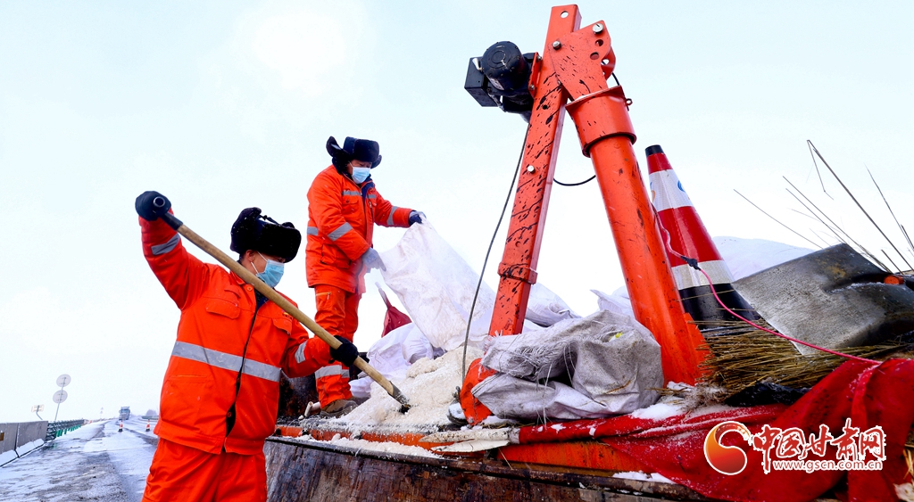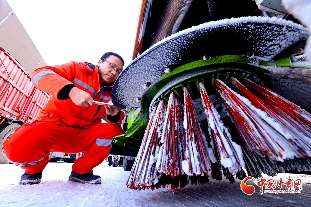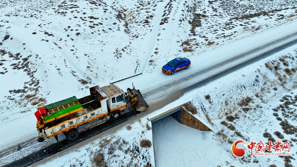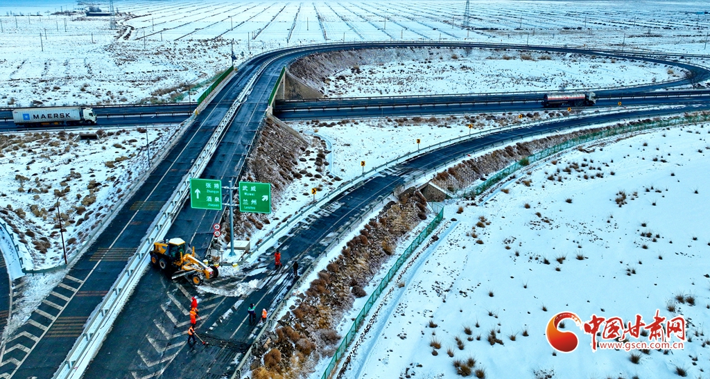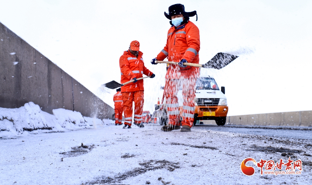 12月10日,張掖公路事業(yè)發(fā)展中心山丹公路段的養(yǎng)護(hù)工人們正在進(jìn)行除雪工作,確保公路的暢通。