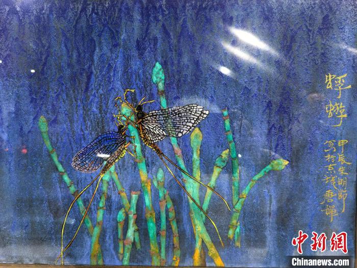 “蝶戀花”礦物顏料昆蟲(chóng)復(fù)原畫作。任麗娜 攝