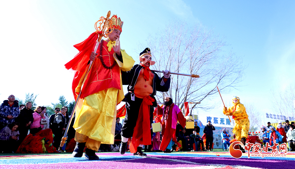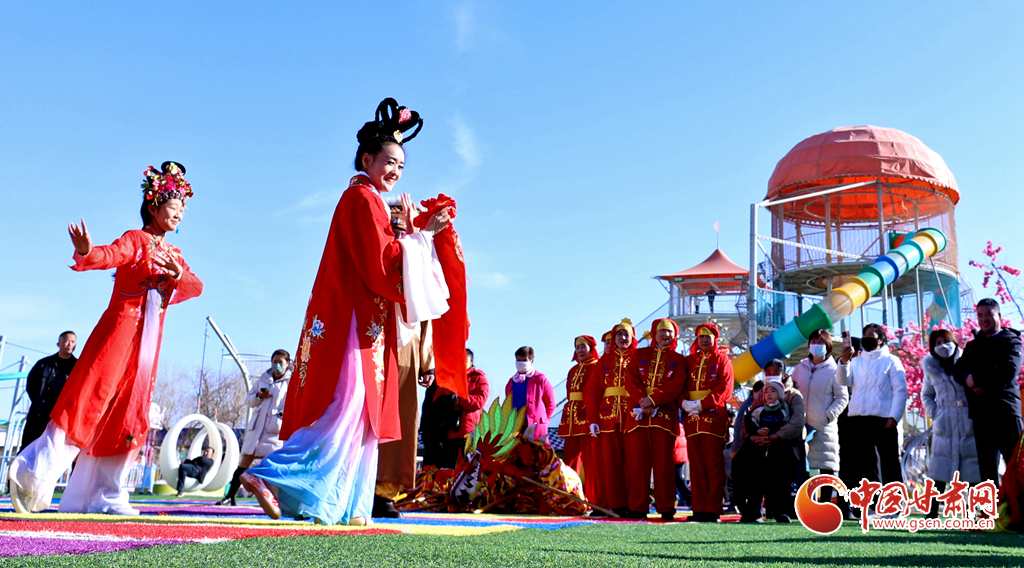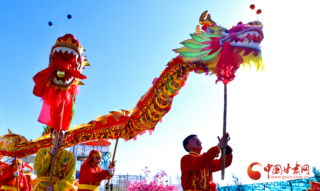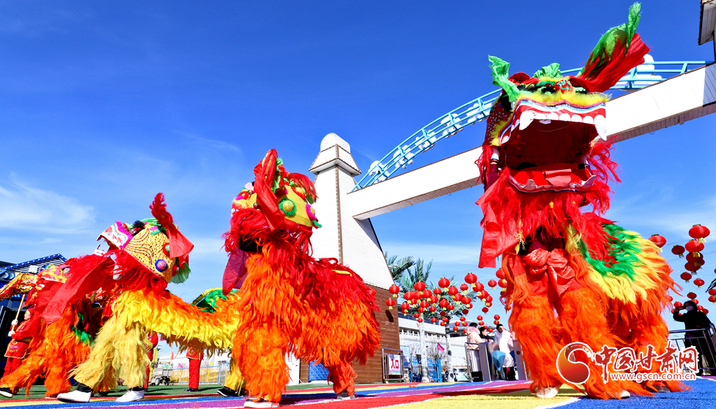 春節(jié)期間,甘肅省張掖市甘州區(qū)一游樂園內(nèi)熱鬧非凡,張掖云海民俗文化藝術(shù)團的演員們舞起祥龍雄獅、敲起威風(fēng)鑼鼓,讓市民和游客在傳統(tǒng)民俗文化的氛圍中歡度春節(jié)假期。