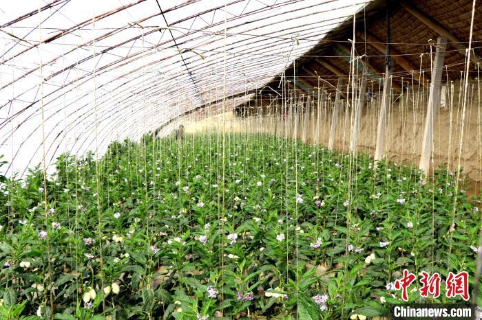 圖為民勤縣溫室人參果種植基地,一株株人參果生長茂盛,葉片翠綠欲滴。(資料圖)馬愛彬 攝