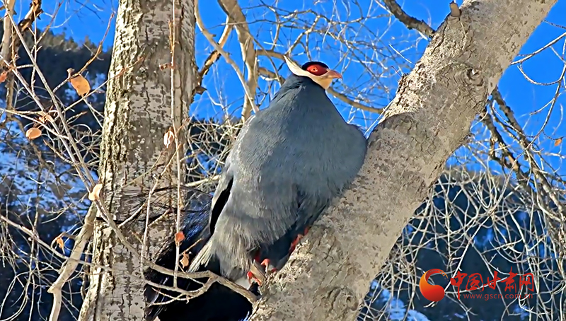 巡護員用鏡頭記錄下畫面,二十余只藍馬雞宛如冰雪精靈,在銀裝素裹的喬木林間愜意“聚會”。三五成群的藍馬雞用強健有力的爪喙翻動雪層,精準定位埋藏的草籽,專心干飯。距地面十余米的楊樹上,擔任警戒的“哨兵”不時發(fā)出低沉的咕嚕聲,蓬松的尾羽在陽光下流轉著金屬般的光澤。最引人注目的當數(shù)林間空地上的“時裝秀”了,“模特”們輪流抖動藍黑漸變的羽毛,頸后白色耳羽簇如流蘇輕顫,精彩的表演折服了五位“評委”,它們個個目不轉睛,生怕漏掉每一個演出細節(jié)。這場持續(xù)數(shù)小時的藍馬雞“聚會”也為祁連山國家公園生態(tài)系統(tǒng)健康運轉做出了生動注腳。