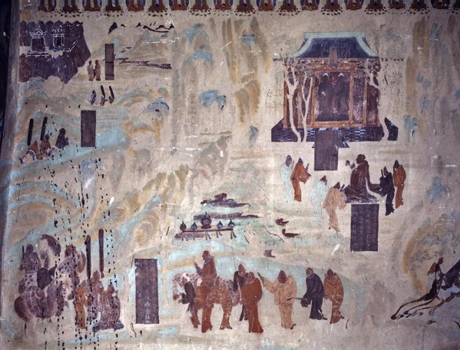 莫高窟第323窟張騫出使西域圖。新華社發(fā)(敦煌研究院供圖)