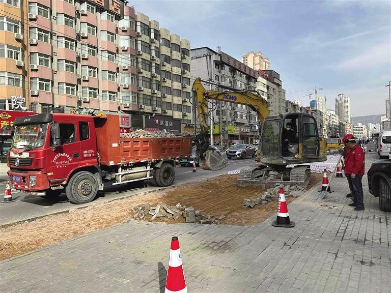 3月10日下午,記者在火車站東路金匯廣場小區(qū)門前的施工現(xiàn)場看到,挖掘機正在鏟除拓寬區(qū)域的人行道磚,附近馬路只有小半幅施工占用,對交通影響不大。