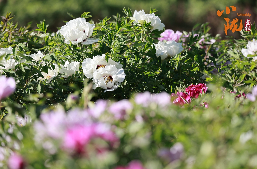 陽光照射下,牡丹粉的如霞,嬌艷柔美;白的像雪,純凈典雅,還有紫、黃等多種色彩相互交織,花朵碩大且花瓣層層疊疊,在微風中輕輕搖曳,散發(fā)出陣陣淡雅的清香,讓人陶醉其中。
