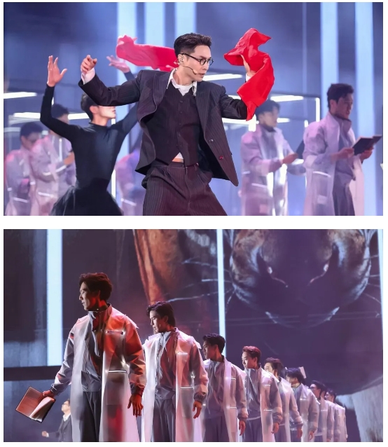 該劇最大的亮點在于創(chuàng)新性藝術融合,將非遺、科技、禪意、潮流、AI融入先鋒音樂話劇,打破傳統(tǒng)觀演模式和傳統(tǒng)舞臺結構,巧妙植入演唱會、音樂劇、話劇、舞劇甚至是電影多種藝術表現(xiàn)形式,通過人工智能、影視化、動畫真人融合等最新科技賦能舞臺,實現(xiàn)“戲劇+影視+Live”多種藝術場域的融合,“創(chuàng)造”了既現(xiàn)代又滿載中國審美的“敦煌”空間,讓觀眾沉浸體驗敦煌文化的輝煌與魅力。