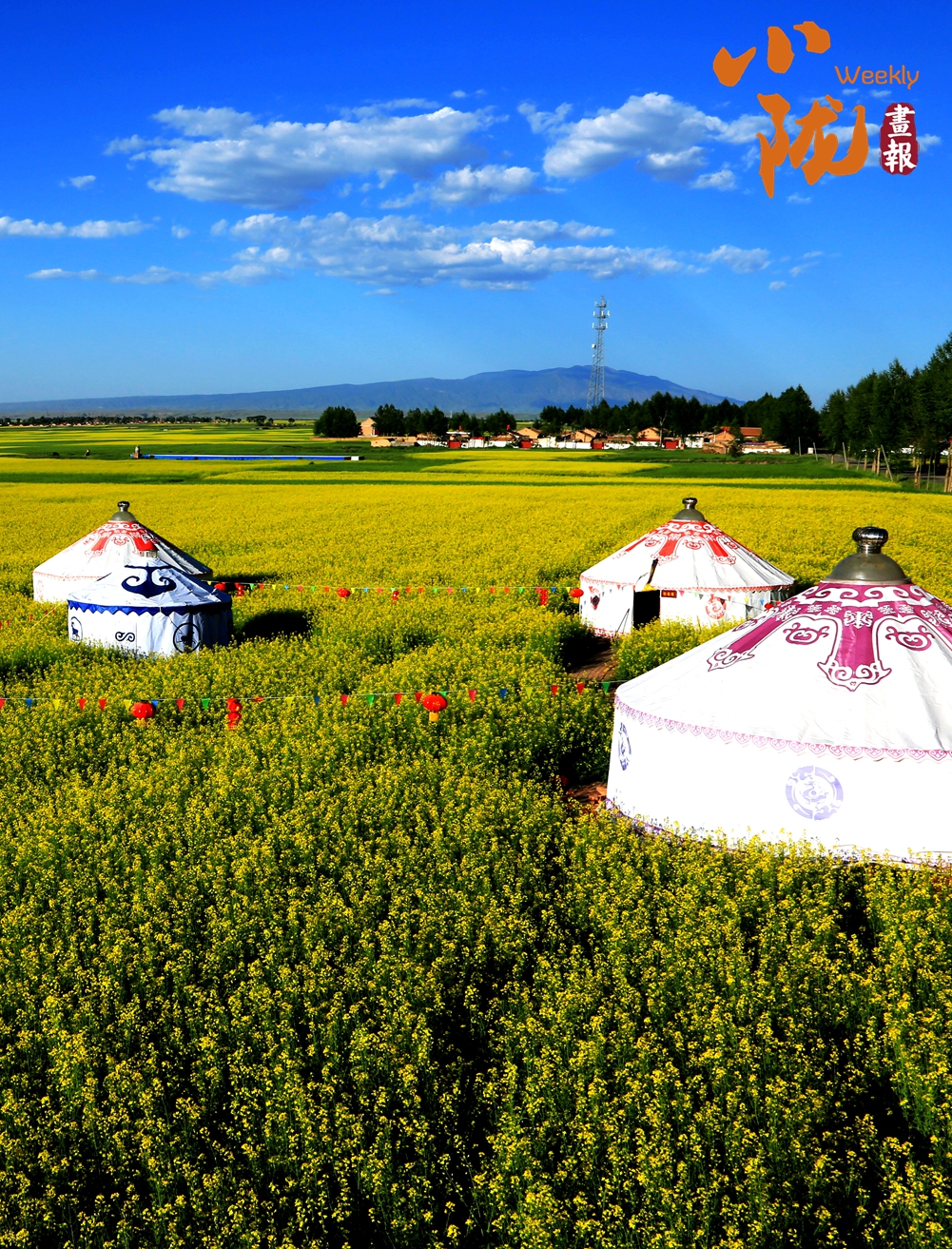 綠浪在鐵軌兩側(cè)翻涌,演奏著夏日歡快的音符,銀色列車如琴弦穿過田野,指揮著這場盛大的樂曲。這里的每一寸土地似乎都披上了一層華麗的金色外套,宛如世外桃源。濃郁的花香令人陶醉,壯美的風景令人禁不住手舞足蹈,引吭高歌,流連忘返。