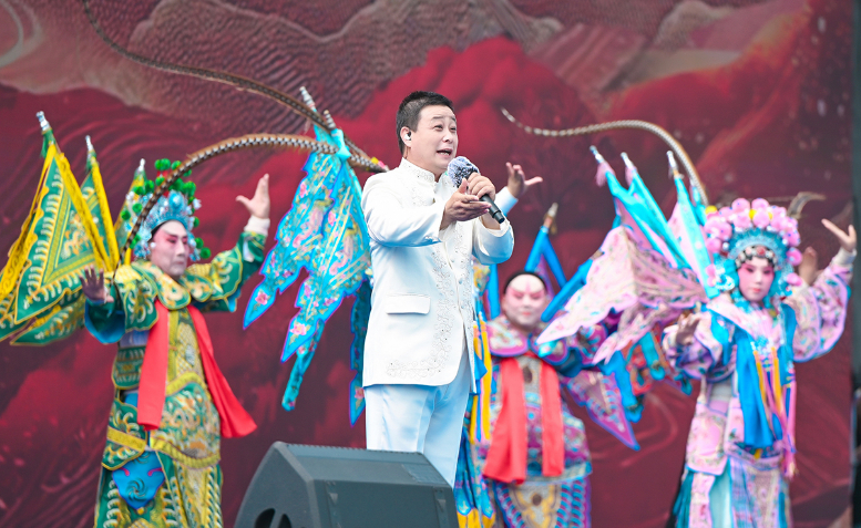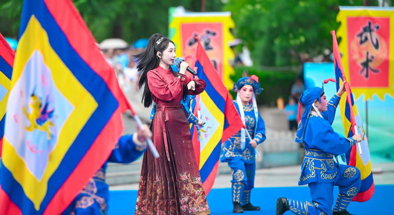 活動(dòng)伊始,開場(chǎng)片《歡迎乘坐崆峒號(hào)》以“環(huán)西部火車游·崆峒號(hào)”平?jīng)雎糜螌A袨殪`感,通過跨時(shí)空對(duì)話串聯(lián)崆峒山古今脈絡(luò),拉開活動(dòng)序幕?,F(xiàn)場(chǎng),街舞與崆峒武術(shù)團(tuán)體合作的《武韻崆峒》展現(xiàn)武術(shù)與現(xiàn)代肢體藝術(shù)新生機(jī);笛子演奏與武術(shù)冠軍聯(lián)袂呈現(xiàn)的《崆音劍影》打造“可聽的武術(shù)”沉浸式體驗(yàn);30人陣容的江蘇武協(xié)女子太極拳團(tuán)體演繹《鶴起崆峒》,詮釋武術(shù)新功用;國風(fēng)歌手與秦腔表演藝術(shù)家合作的《秦韻長(zhǎng)歌》,展現(xiàn)“武戲同源”的多元魅力。